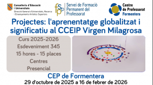 Rosa Martí Julià wrote a new post, 345-Projectes: l'aprenentatge globalitzat i significatiu al CCEIP Virgen Milagrosa, on the site Centre de Professorat de Formentera fa 1 mes, 1 setmana