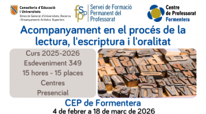 Rosa Martí Julià wrote a new post, 349-Acompanyament en el procés de la lectura, l'escriptura i l'oralitat, on the site Centre de Professorat de Formentera fa 5 dies, 11 hores